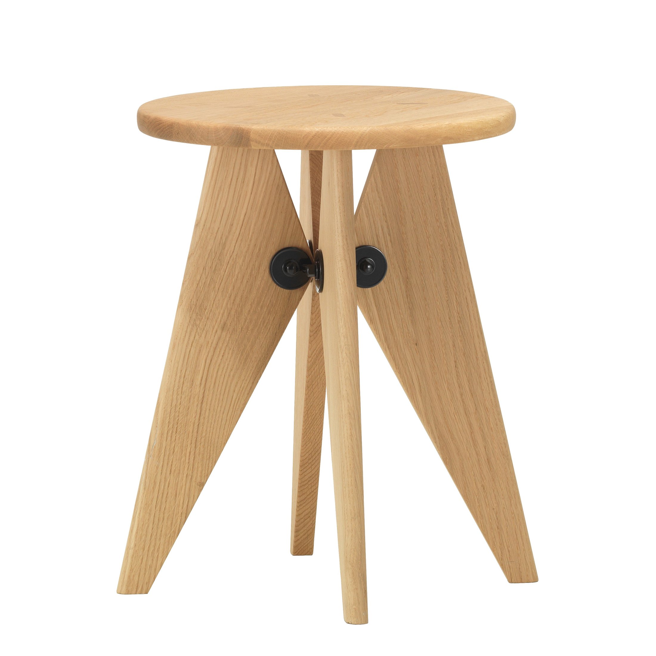 Selbst der kleine Hocker oder Beistelltisch Tabouret Bois trägt die markante Handschrift Jean Prouvés. Die Konstruktion, die der Statik folgt, ist klar erkennbar.