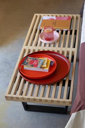 Die geradlinige und klare Formensprache der Sitzbank Nelson Bench reflektiert den architektonischen Hintergrund von George Nelson. Wie viele Designklassiker ist die Bank flexibel einsetzbar und kann auch als Ablagetisch verwendet werden.