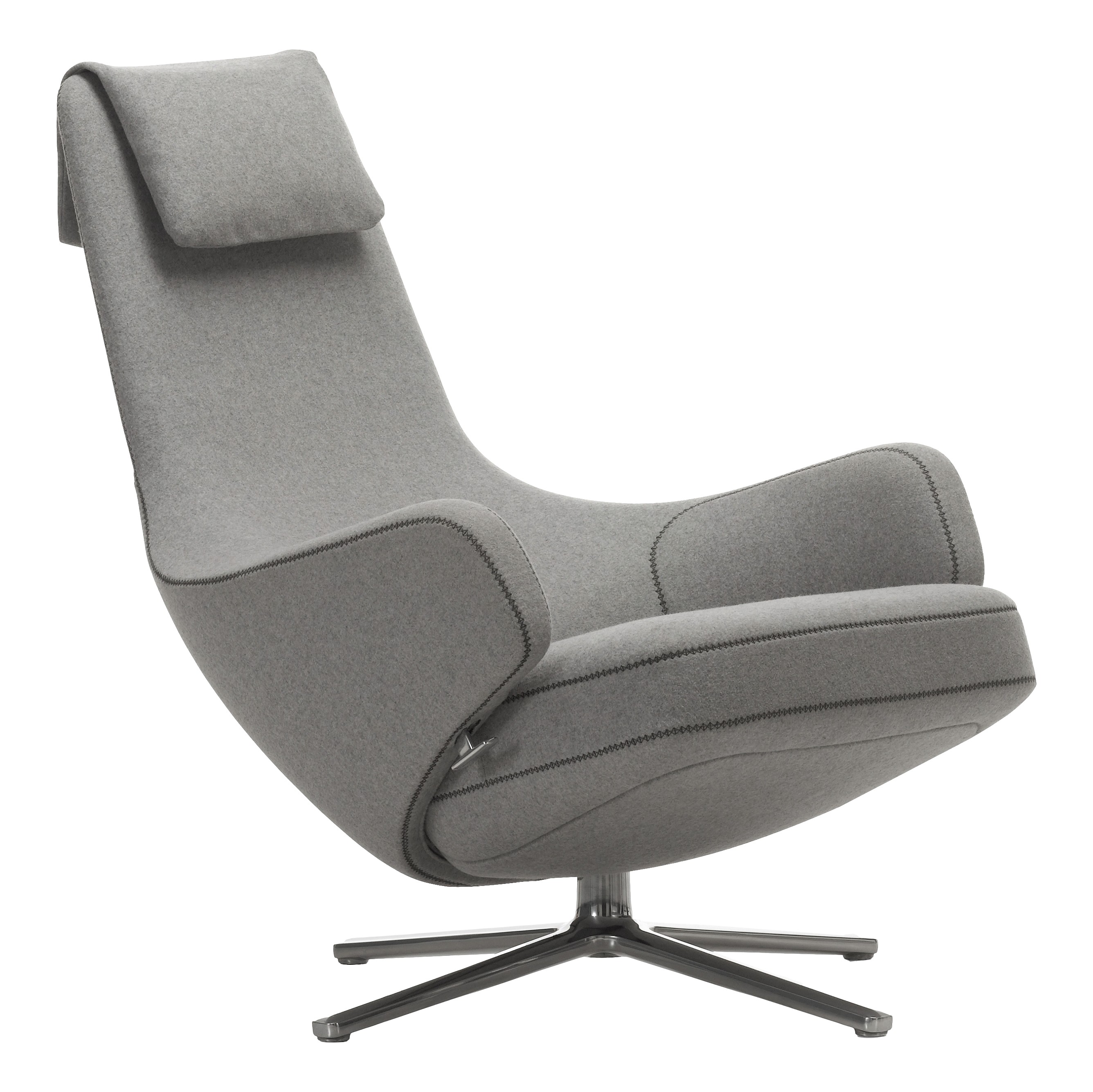 Der elegante, aber dennoch funktionale Lounge-Sessel bietet durch seine raffinierte, im Inneren verborgene Synchronmechanik einen idealen Rückzugsort. Er passt sich individuell dem Körpergewicht an, lässt sich arretieren und sorgt in jeder Sitz- oder Liegeposition für optimalen Halt und höchsten Sitzgenuss.