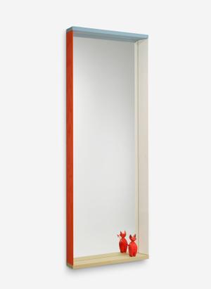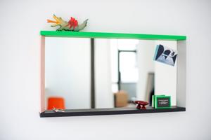 Die Colour Frame Mirrors sind in drei verschiedenen Größen erhältlich und bestechen durch ihre markanten Rahmen, die sie zu grafischen Objekten machen. Die vierseitigen Rahmen kombinieren je nach Größe zwei lebendig-bunte und eine dezente Farbvariante, was den Spiegeln eine spielerische und zugleich stilvolle Ästhetik verleiht. Dank der Tiefe der Rahmen können sie auch praktisch genutzt werden, etwa als Ablage für Schlüssel, Brillen oder dekorative Gegenstände.