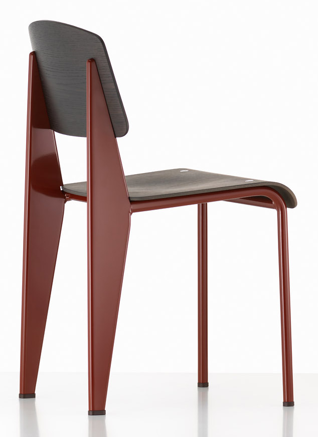 Die Belastung eines Stuhls ist an den hinteren Beinen am größten, dort wo er das Gewicht des Oberkörpers aufnehmen muss. Diese einfache Erkenntnis setzte der Designer und Konstrukteur Jean Prouvé auf prägnante Art und Weise beim Stuhl Standard um: Während für die schwächer belasteten Vorderbeine ein Stahlrohr genügt, sind die hinteren Beine des Stuhls als voluminöse Hohlkörper ausgebildet, welche die Belastung an den Boden weitergeben.