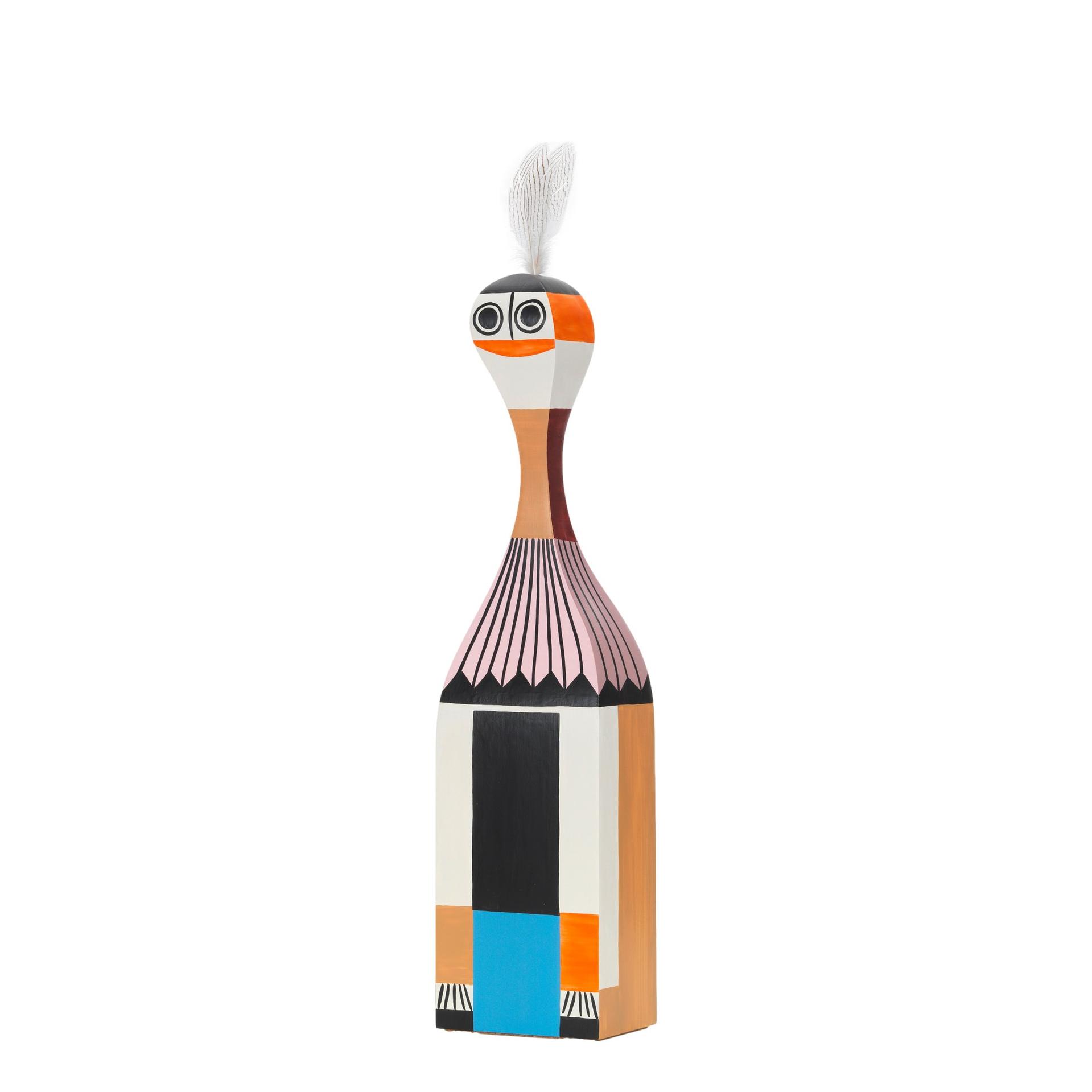 Die Wooden Dolls sind Holzfiguren, die Alexander Girard - inspiriert durch seine eigene Volkskunst-Sammlung - 1952 eigenhändig für sein Haus in Santa Fe hergestellt hat. Die Originale aus dem Girard-Nachlass im Vitra Design Museum standen Pate für die Re-Edition. Sie stellen menschliche und tierische Charaktere dar. Die Wooden Dolls super large werden im Maßstab 4,15:1 gefertigt.