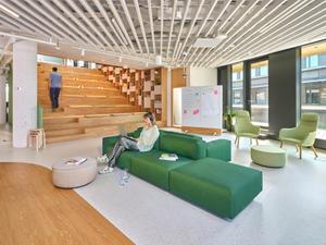 Die mobile Trennwand Dancing Wall gliedert Räume in flexible Zonen. Die Trennwand fungiert dabei auch als vertikale Arbeitsfläche. So können Unternehmen auf veränderte Organisationsformen reagieren.