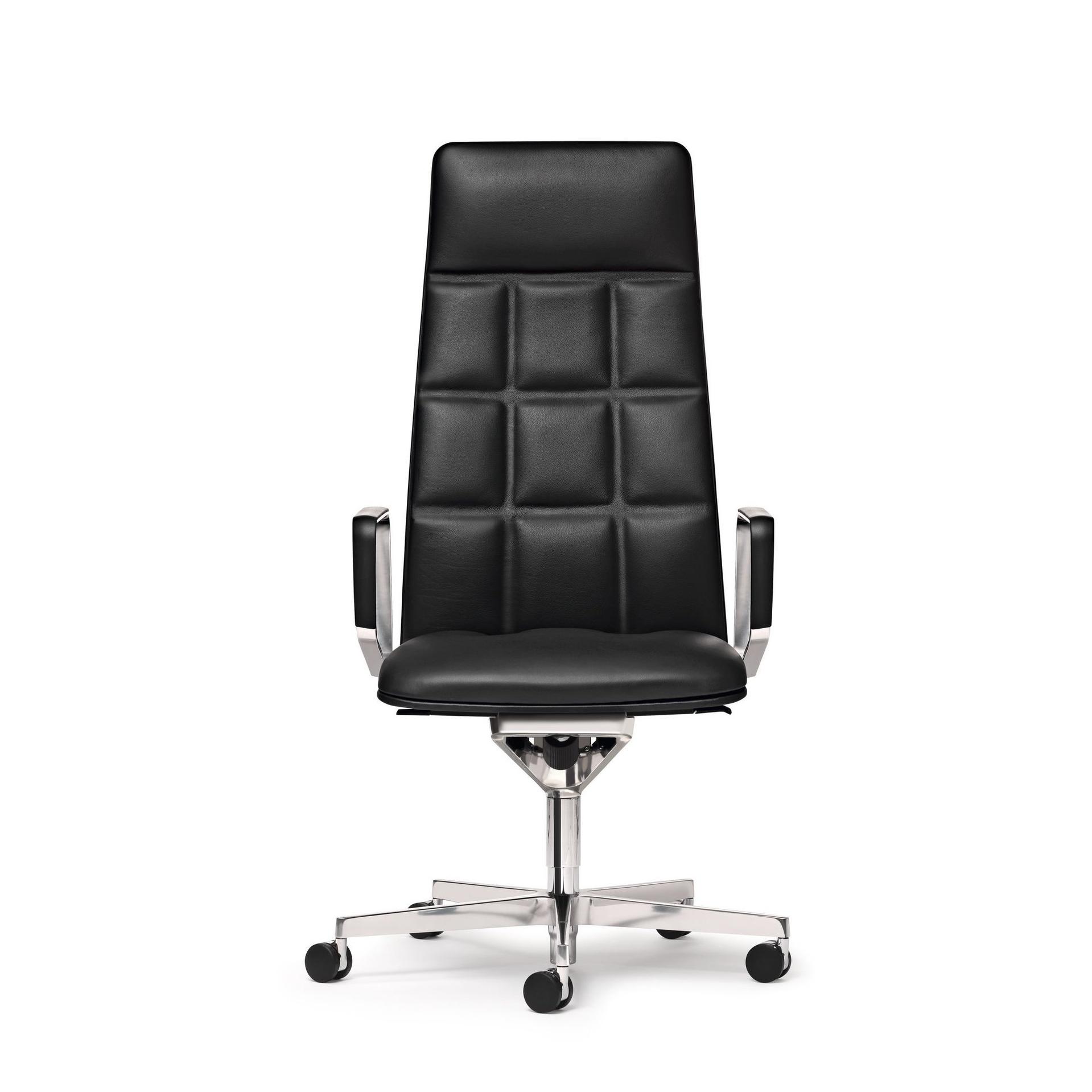 Das klare Erscheinungsbild des Leadchair setzt sich aus mehreren Faktoren zusammen. Fließende Formen modulieren das elegante Polster mit herrlich weichem Leder. Fußkreuz, Drehsäule, Sitz- und Rückengabel sowie die Armlehnen scheinen aus einem Guss. Hohe Funktionalität durch die Synchronmechanik ist gewährleistet.