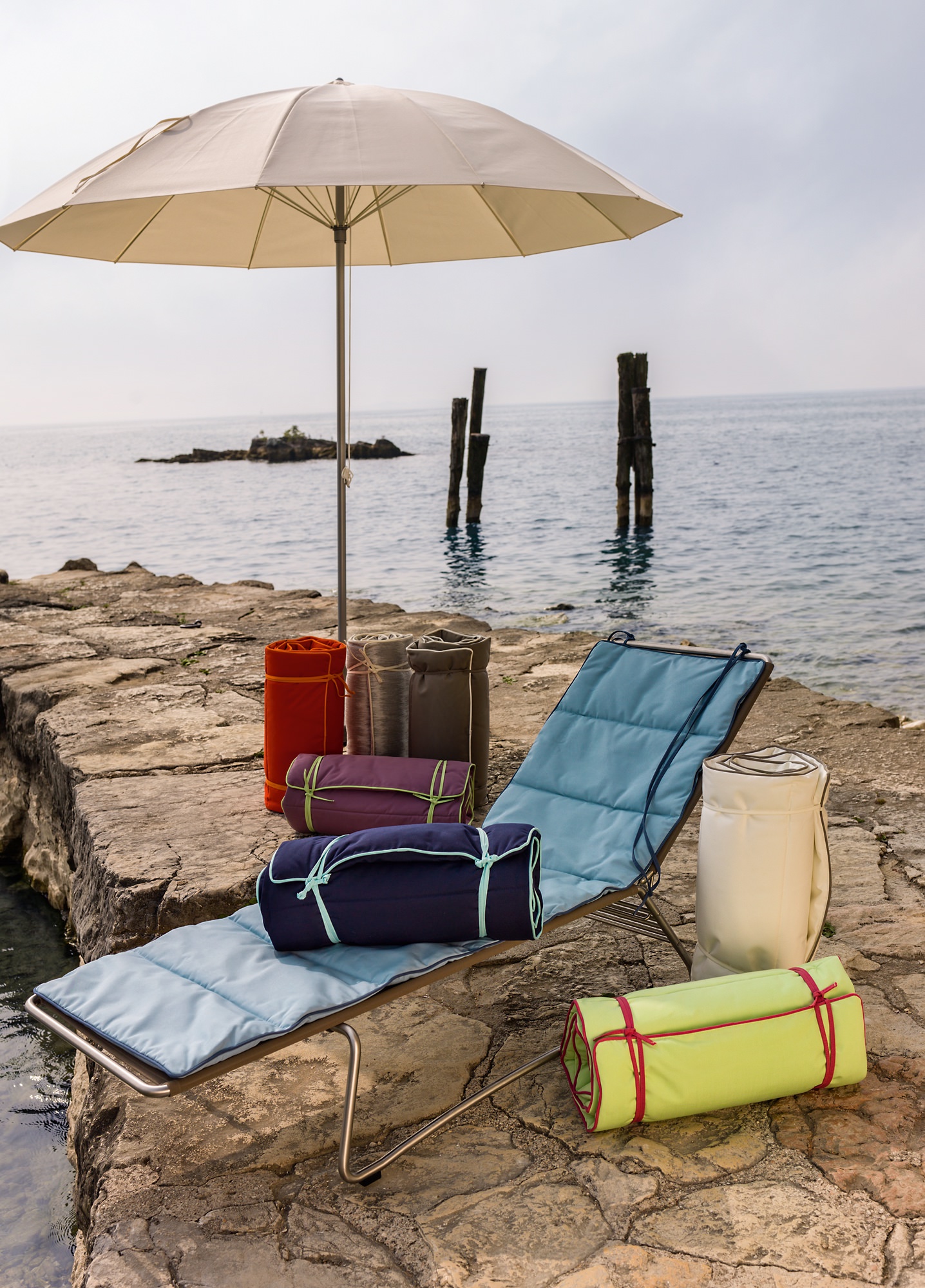 Erst war die Badematte als Auflage für Sonnenliegen entworfen worden. Doch schnell wurde ein weiteres Einsatzgebiet gefunden. Ob im Garten, am See oder Strand, durch eine Vliesfüllung ist die Matte für alles geeignet. Ausgewählt werden kann zwischen vier Stoffarten und über 20 Farben, die Ihre Matte zu einem persönlichen Lieblingsstück werden lassen.