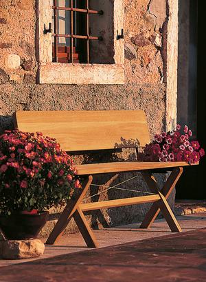 Die Cross-Kollektion wurde entwickelt, um eine moderne Interpretation von Biergartenmöbeln zu bieten: unkompliziert, platzsparend und dennoch komfortabel. Hergestellt aus massivem Teak und in verschiedenen Banklängen erhältlich. Dank kreuzförmig angeordneter Edelstahl-Seilverspannungen sind alle Möbel äußerst stabil. Hochwertiges Design trifft hochwertiges Material und erzeugt einen soliden Entwurf mit mediterranem Flair.