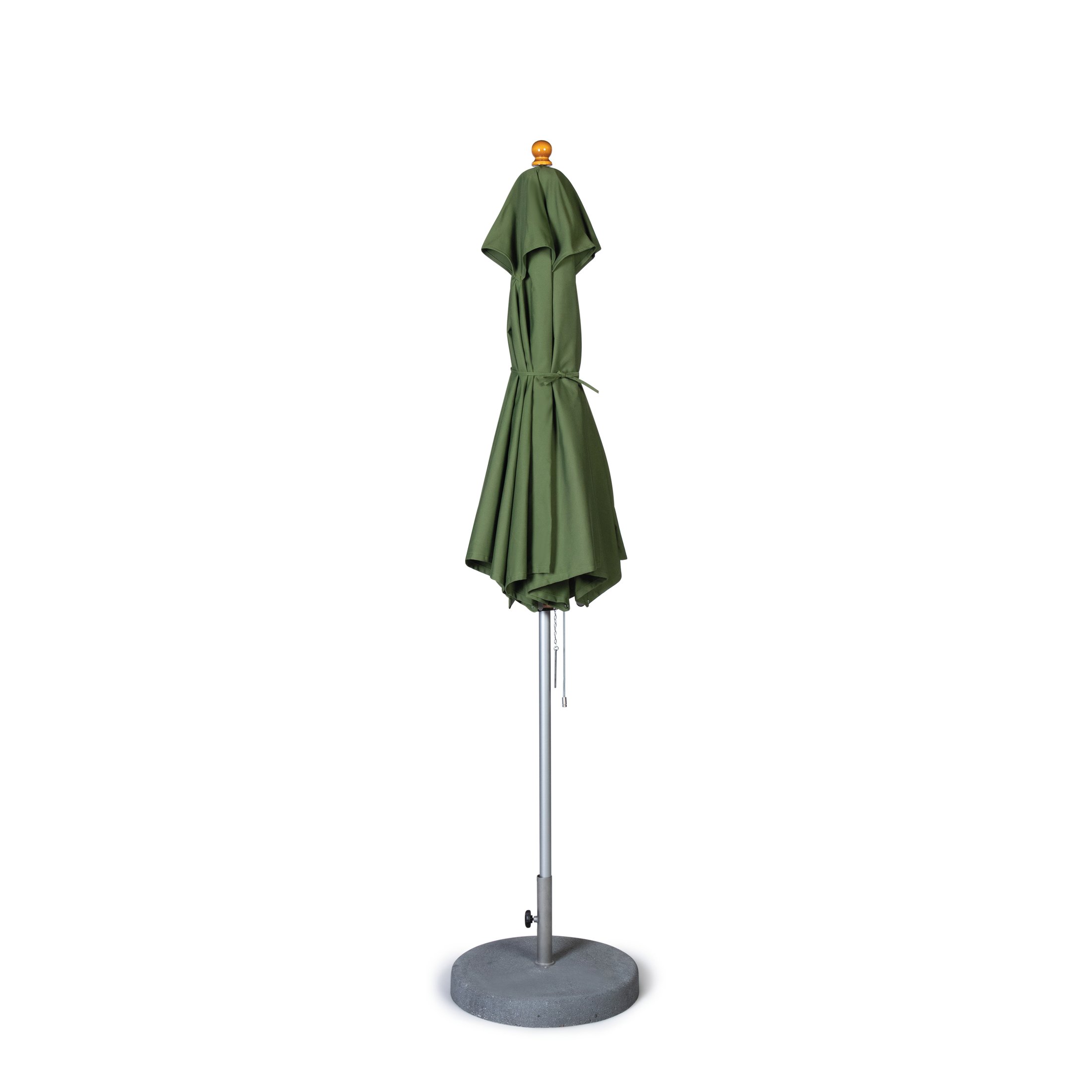Der Schirm wird standardmäßig inkl. Flaschenzug und Bodenplatte, ohne Knickmechanismus konfiguriert.