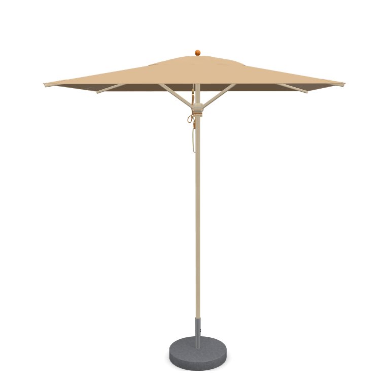 Dank einer Oberflächenimprägnierung hält der Klassiker problemlos kurzen Regenschauern stand. Auch kleine Böen können ihm nichts anhaben, da eine Lufthaube für weniger Angriffsfläche sorgt. Der Klassiker ist ein Multitalent. Mit weiterem Zubehör, wie zum Beispiel bodenlagen Persennings, kann er zu einem geschlossenen Pavillon verwandelt werden. Es kann auch ein Flaschenzug, Knickmechanismus und verschiedene Sonnenschirmständer hinzugefügt werden, um ihn noch besser an Ihre Anforderungen anzupassen. Auswählen können Sie zwischen runden (8-eckig), quadratischen oder rechteckigen Schirmen, sowie verschiedenen Größen und Farben.