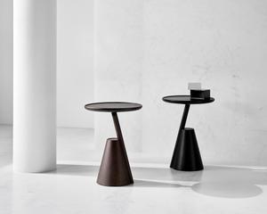 Der Beistelltisch Mate von Wendelbo verbindet geometrische Formen zu einem harmonischen Design. Dieser Seitentisch besticht durch eine ästhetische Balance, die durch ein starkes Augenmerk auf Materialität, Proportionen und Skalierung geleitet wird. Aus einer symbolischen Perspektive betrachtet, scheint das Tablett scheinbar über der skulpturalen Basis zu schweben und neigt sich dem Benutzer wie ein persönlicher Diener zu. Dieses Design vereint Funktionalität mit einer ansprechenden Ästhetik und fügt sich elegant in moderne Wohnräume ein.