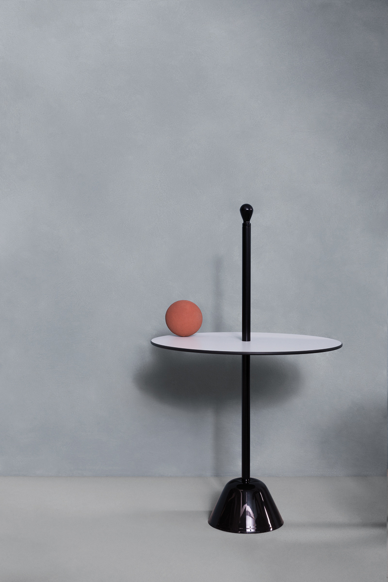 Das Designobjekt stammt aus dem Hause Zanotta und wurde bereits 1974 von Achille Castiglioni ins Leben gerufen. Servomuto zeichnet sich durch italienische Eleganz aus, der es an Funktionalität nicht mangelt. Ein schlichter Knauf in angenehm greifbarer Höhe lädt dazu ein, ihn genau dorthin zu tragen, wo er am meisten gebraucht wird. Sein Fuß ist aus Polypropylen gefertigt, die Stange besteht aus Stahl und die Tischplatte aus Plastiklaminat.