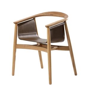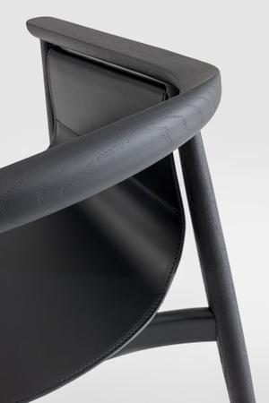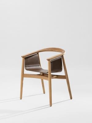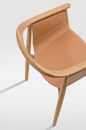 Mit Pelle hat das Designstudio Lorenz+Kaz 2012 einen Stuhl entworfen, der Eleganz mit klarer Funktion verbindet. Sein halbkreisförmiges Rücken- und Armlehnen-Element erinnert an skandinavische Klassiker und verleiht dem Entwurf eine großzügige, offene Anmutung. Charakteristisch ist der frei hängende Sitz, der von einer Rundstrebe getragen wird und so Leichtigkeit und Stabilität zugleich vermittelt. In der Leder-Ausführung entsteht eine besonders klare, grafische Wirkung mit feiner Materialität.