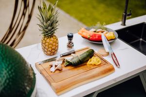 Die Fertigung erfolgt in einem spezialisierten Werk in Mexiko, in dem sämtliche Keramikelemente unter strengen Qualitätsstandards produziert und kontrolliert werden. Ein integriertes Deckelthermometer, regulierbare Luftzufuhr und eine umfangreiche Auswahl an Zubehöroptionen machen das 2XL zu einem flexibel einsetzbaren Kochgerät für den Außenbereich – nutzbar im Sommer wie im Winter.