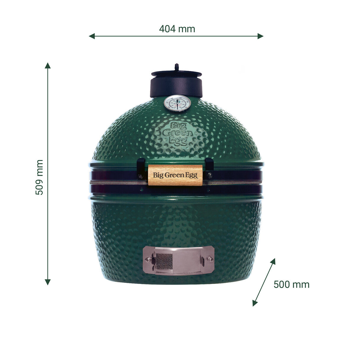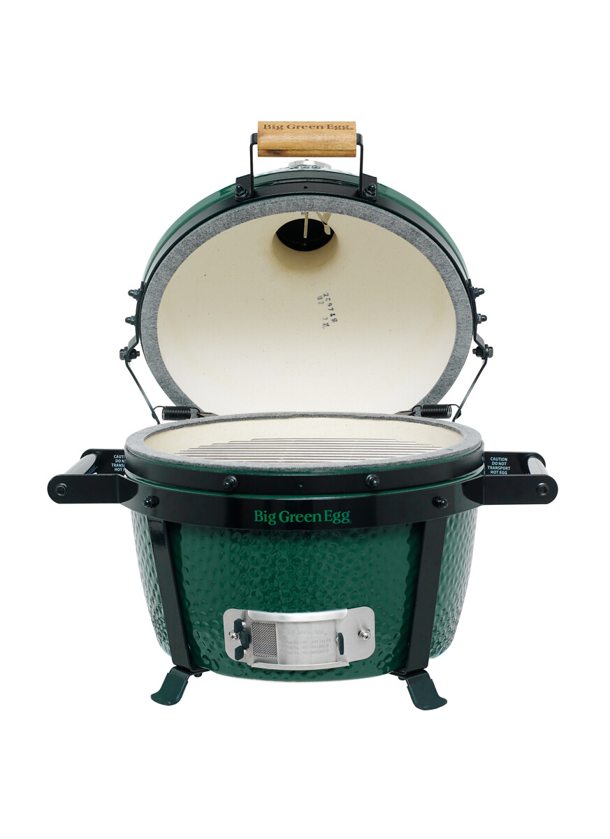 Das Big Green Egg MiniMax zählt zu den kompakten Modellen der Serie und bietet volle Leistung im kleinen Format. Mit einem Rostdurchmesser von 33 cm und einer Kochfläche von 855 cm² bietet es trotz seiner geringen Höhe ausreichend Platz für vier bis sechs Personen. Die keramische Einheit folgt wie alle Modelle dem Prinzip des Kamado – eines traditionellen Tonofens mit vielseitiger Einsatzmöglichkeit für Grillen, Garen und Backen.