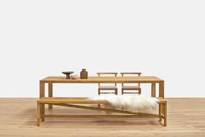 Esstisch Holborn aus dem Jahre 2015 ist eine moderne Neuinterpretation des klassischen Bigfoot Tisches. Die durchstoßenen Tischbeine und das naturbelassene Holz erinnern an sein Design-Vorbild.