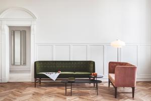 Ein Möbel mit Wiedererkennungswert – der Couchtisch Palette JH7 hebt sich mit seiner extravaganten Formsprache und einem raffinierten Materialmix von gewöhnlichen Kleinmöbeln ab.